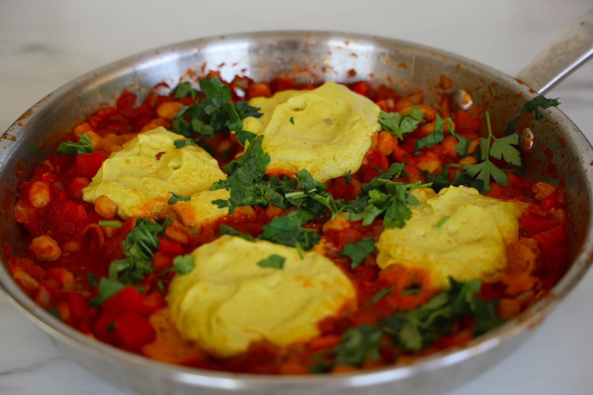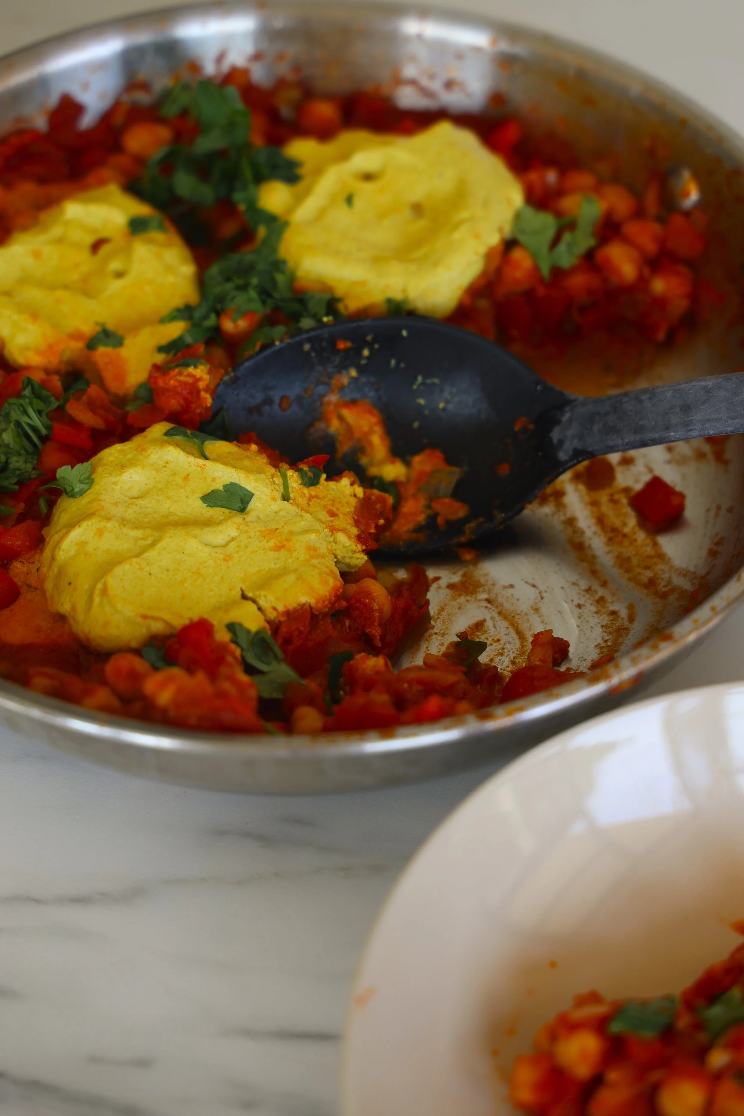 It’s not an authentic recipe, I added chickpeas and tofu for a high-protein meal. It’s delicious and satisfying. Perfect for brunch, lunch or dinner.